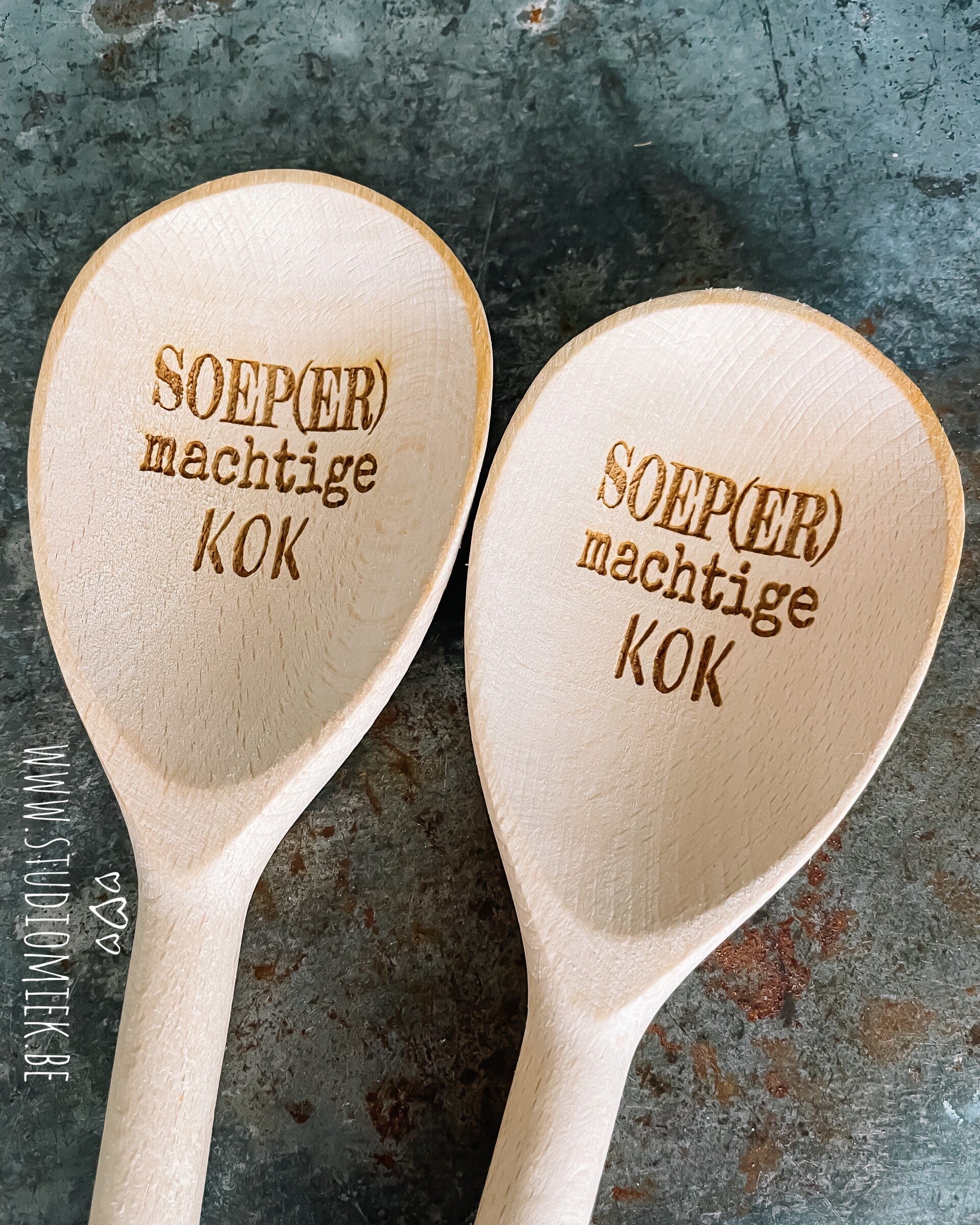 De gravering kan je laten zetten op de steel of op de spatel zelf.