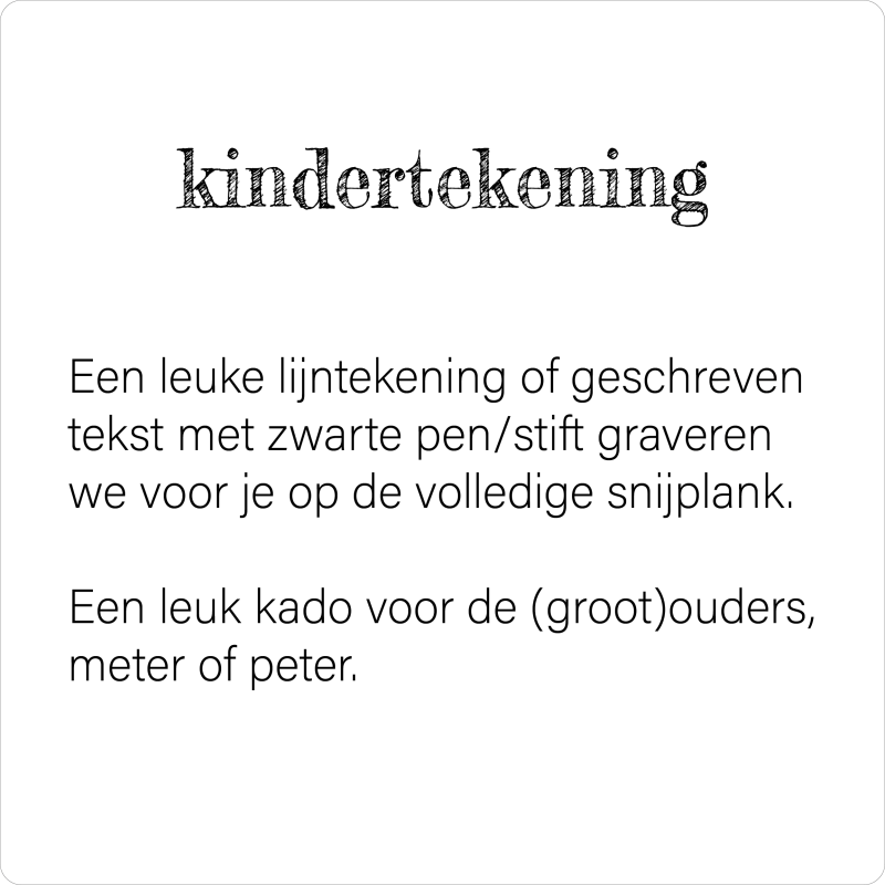 Deze plank leent zich ook goed om een foto of kindertekening op te graveren.