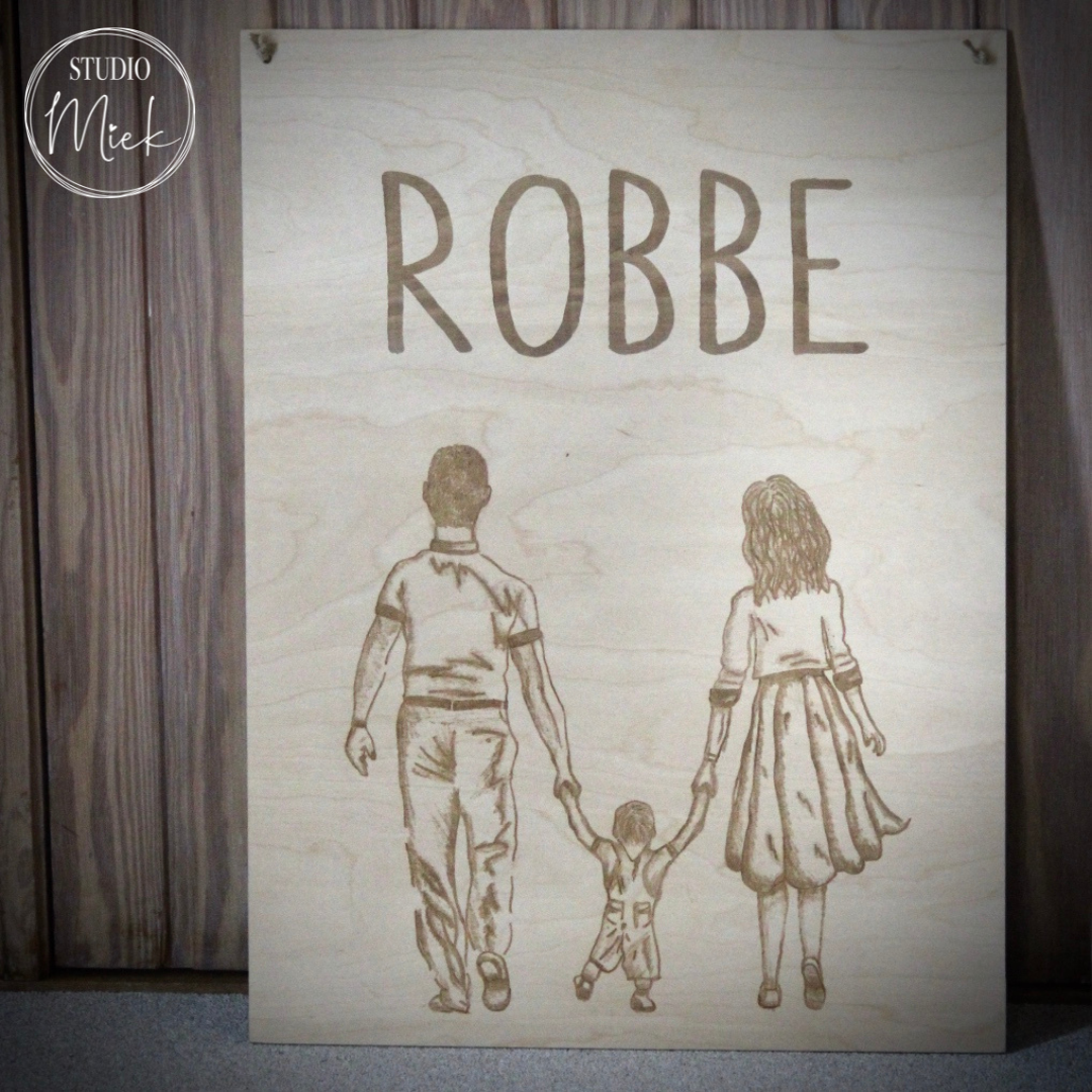 Leuk bij een geboorte. Dit bord kan eerst aan het raam staan om nadien te verhuizen naar de kinderkamer.